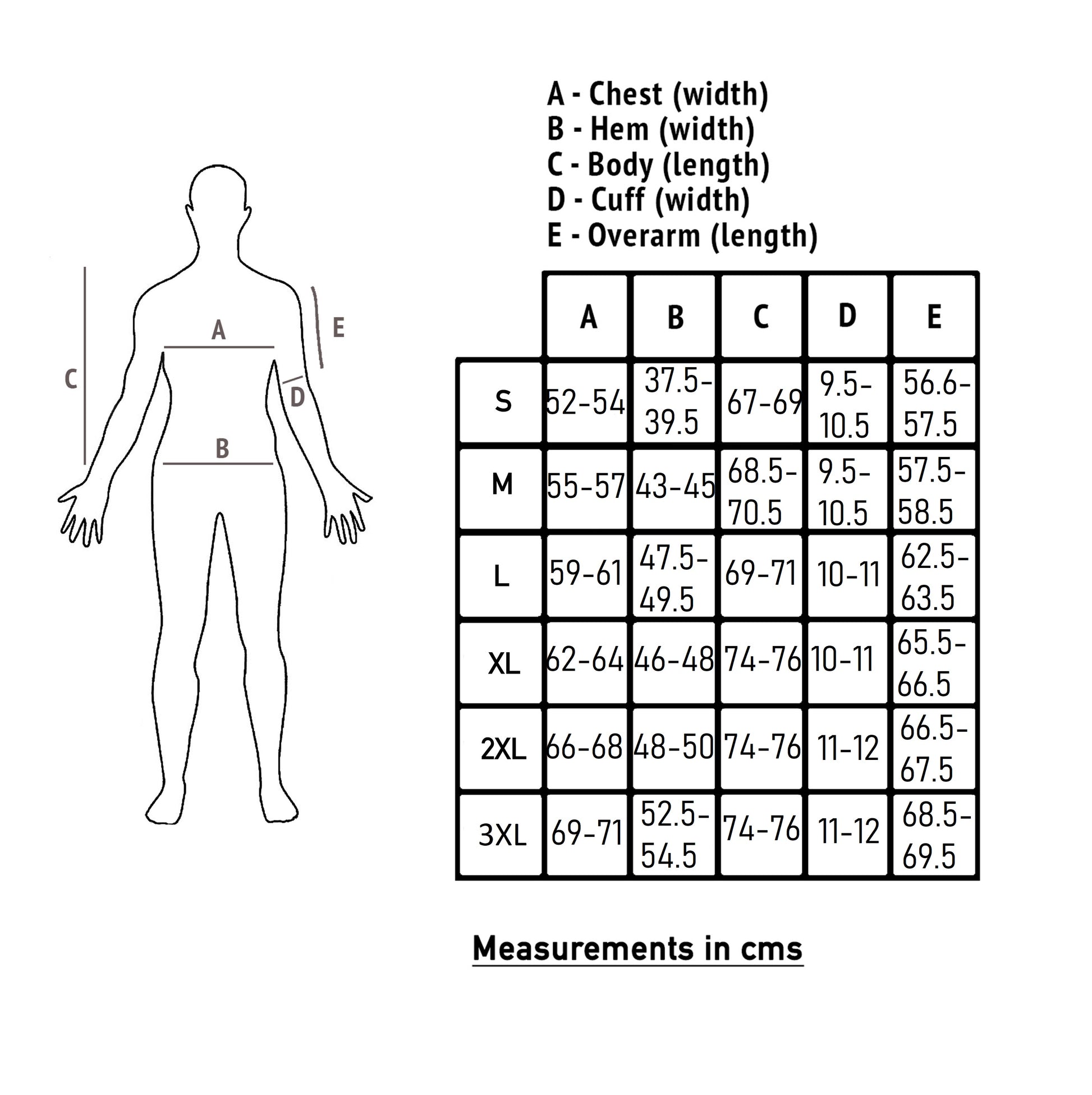 - Garment Size (Chest): Small 42"; Medium 45"; Large 48"; XL 50"; XXL 54"; 3XL 58"